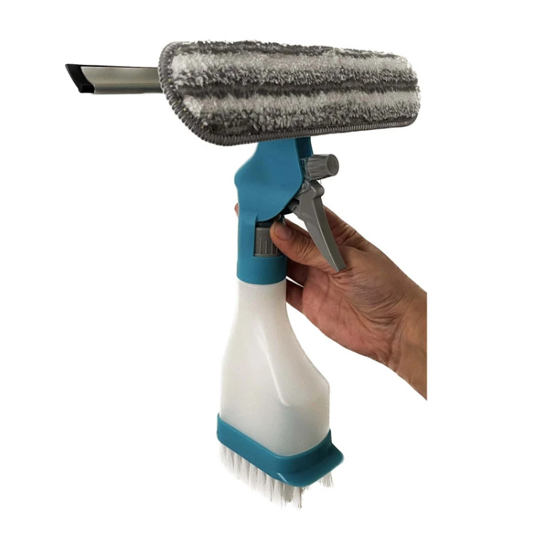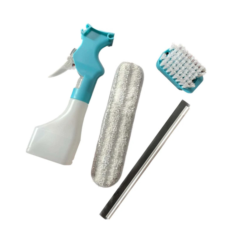 _ محصول شامل ۴ قسمت ۱.مخزن اسپری دار ۲. سری پارچه ای ساخته شده از الیاف نانو ۳. تیغه آب جمع کن ۴ فرچه با تراکم بالا _ ابعاد سری پارچه ای : ۲۴x۵ سانت _ ابعاد تیغه ۲۶x۲ سانت