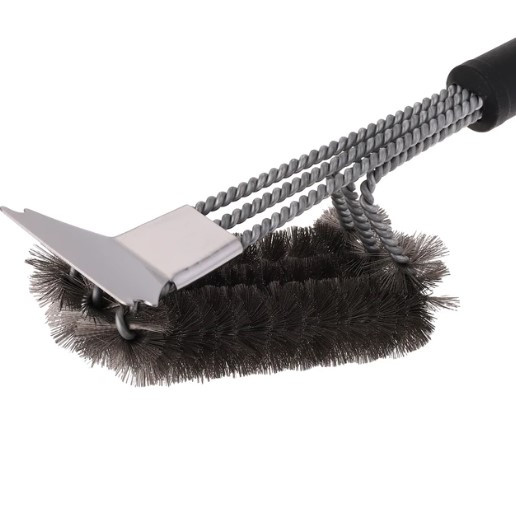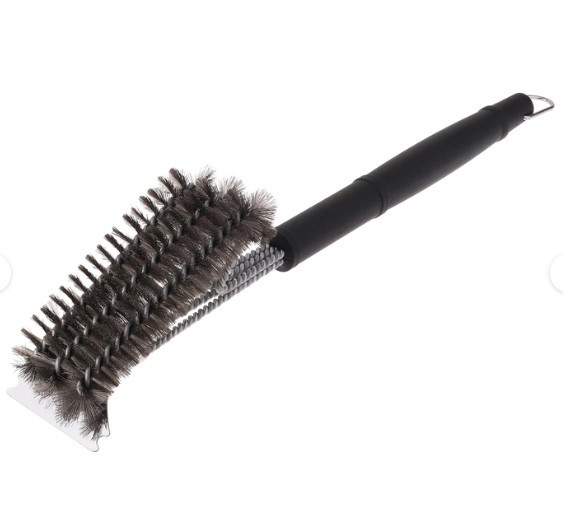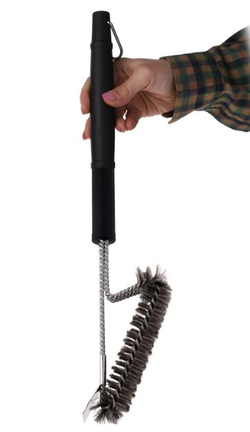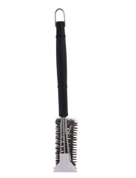 امروزه محصولات گریل و باربیکیو و به سبب آن ابزارهای نظافت این محصولات نیز جایگاه ویژه ای در میان مرد پیدا کرده اند. برس نظافت باربیکیو مدل 20644 جدید ترین و کاربردی ترین برس نظافت باربیکیو سایت آمازون بوده که به صورت انحصاری تحت برند بارک به ایران وارد شده است. ابعاد کلی این برس 43* 7*7 سانت میباشد. قسمت برس محصول ساخته شده از 3 عدد فرچه با جنس فولاد ضد زنگ است که قابلیت نظافت 360 درجه داشته و به علت جنس فولادی به راحتی با آب داغ تمیز میشود و در طولانی مدت بوی نامطبوع به خود نمیگیرد. در قسمت بالایی فرچه یک عدد کاردک با جنس استیل ضد زنگ تعبیه شده تا با استفاده از آن ذرات چسبیده به سطح باربیکیو و منقل را به راحتی تراش داده و جدا کنید. طول دسته محصول 26 سانت بوده و بنابراین فاصله ی مناسب برای تمیز کردن منقل حتی در حالت داغ نیز برای شما فراهم میگردد. جنس دسته ساخته شده از پی وی سی ضد لغزش میباشد که علاوه بر ارگونومی مناسب دارای طول عمر بالا و راحتی در زمان استفاده است.